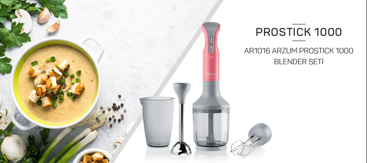 Arzum AR1016-AG Prostick 1000 W El Blender Seti Pembe